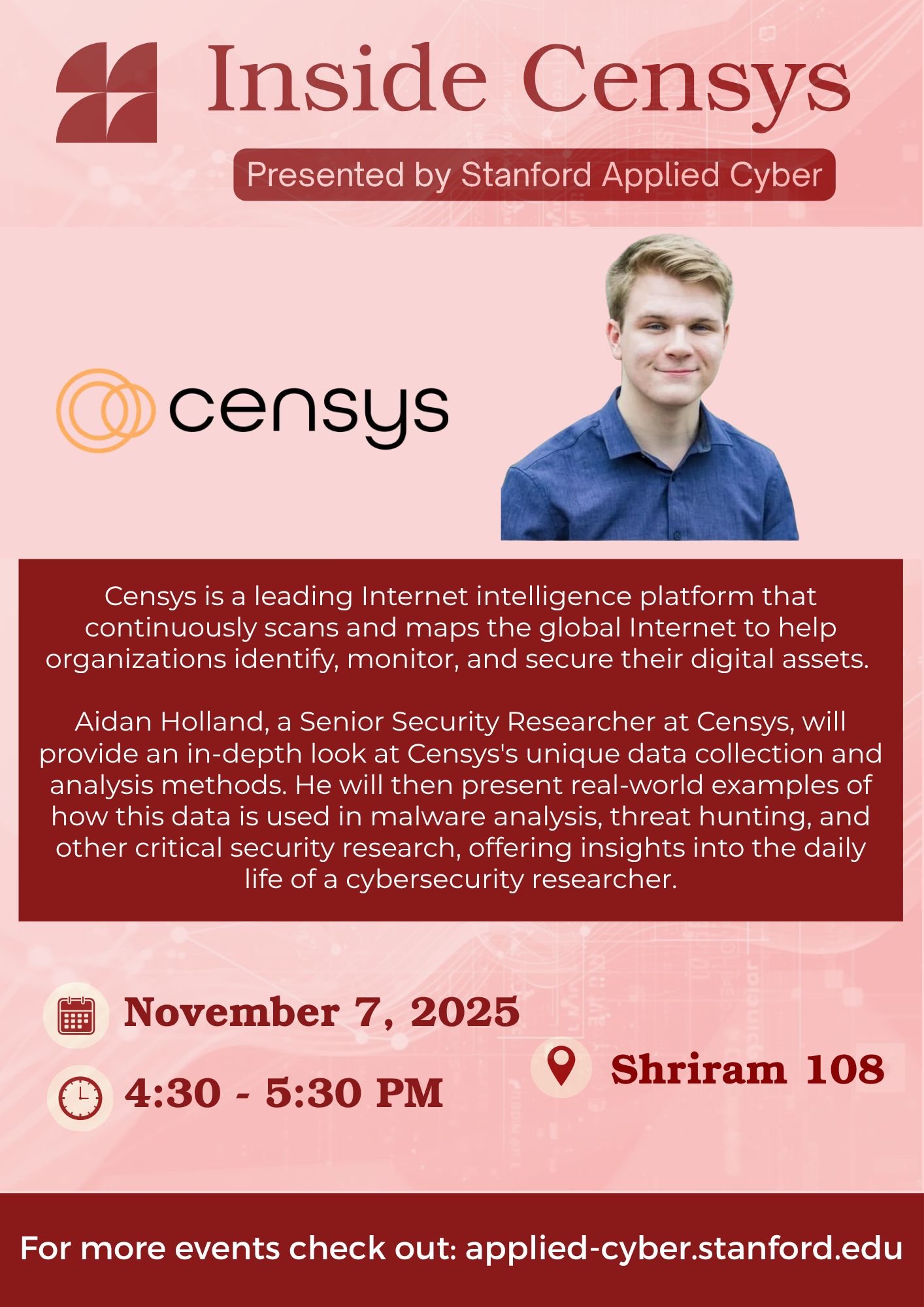 Join Aidan Holland, Senior Security Researcher at Censys, for a deep dive into how Censys maps the global Internet to uncover vulnerabilities and power cutting-edge cybersecurity research. He’ll unpack how Censys collects and analyzes Internet-wide data, share real-world stories from his work in malware analysis and threat hunting, and offer a look inside the daily life of a cybersecurity researcher.