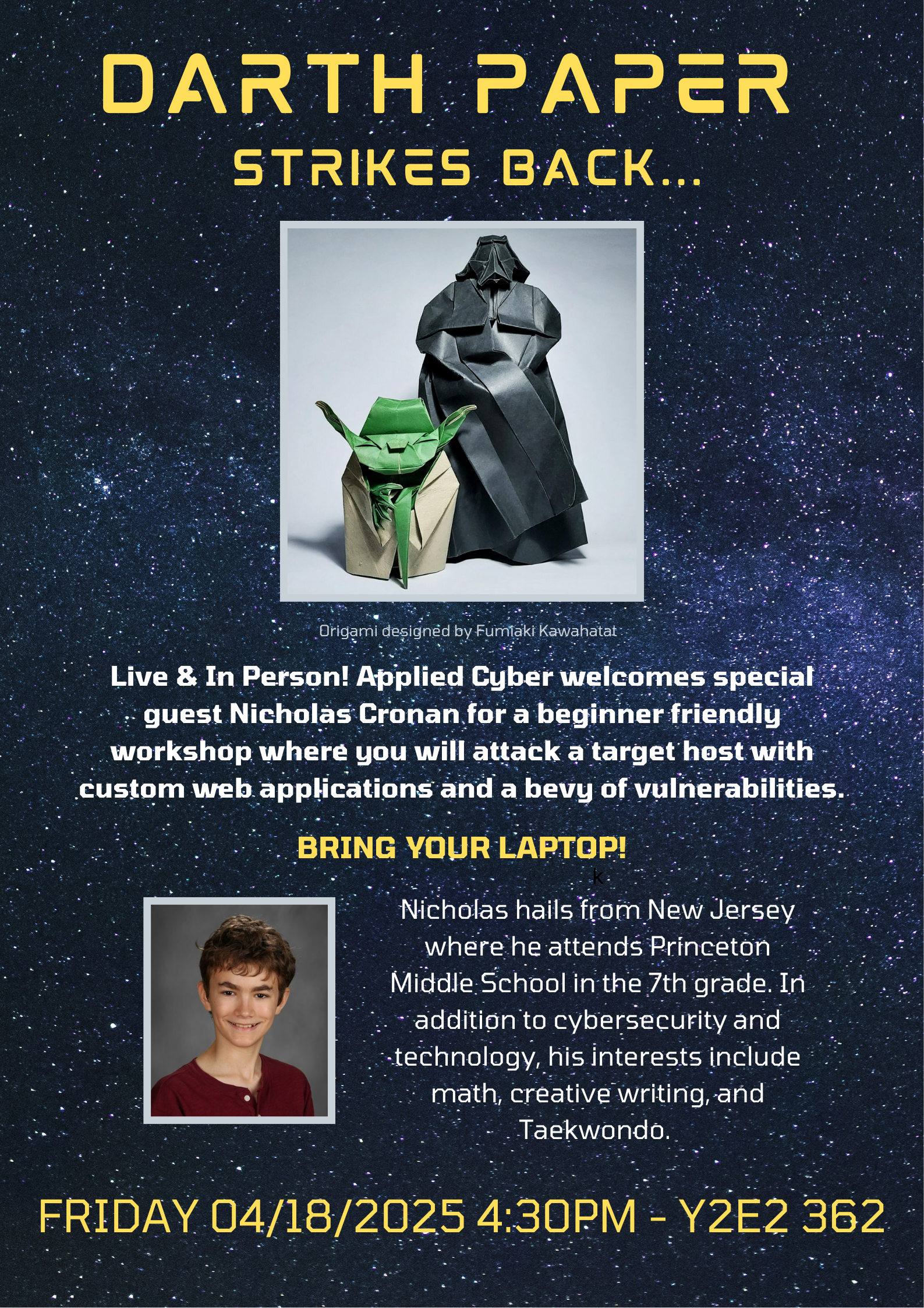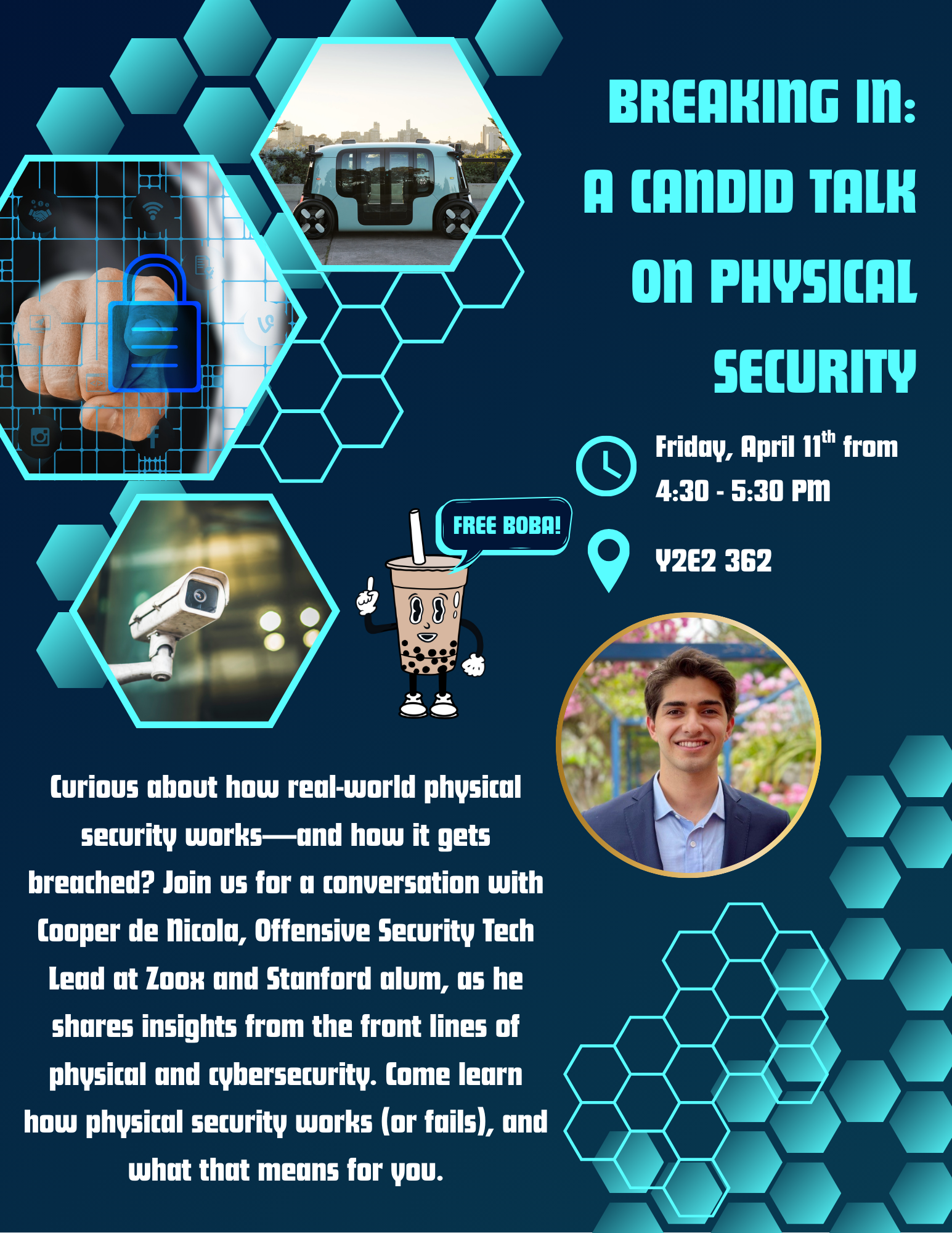 Come join Applied Cyber this Friday to learn about physical security with Stanford alum Cooper de Nicola!